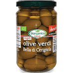 Olive verdi “Bella di Cerignola” in salamoia Biorganica Nuova vengono conservate semplicemente in acqua e sale.